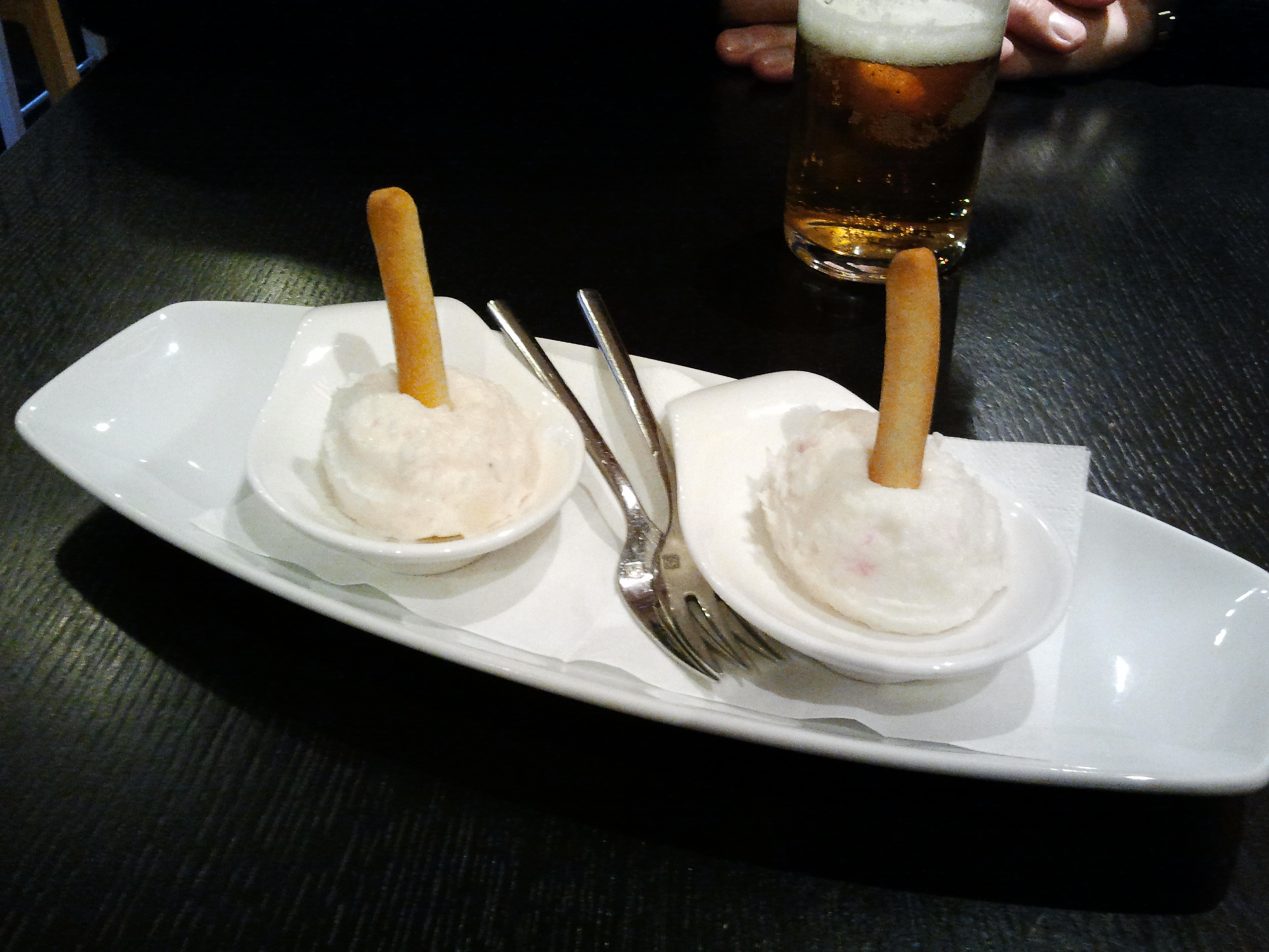 We first ordered some drinks and got right away some stylish potato salad Russian style. The although it is called Russian style this potato salad is typical Spanish. Served with seafood, vegetables and fresh made mayonnaise it is a great way to start off your evening.