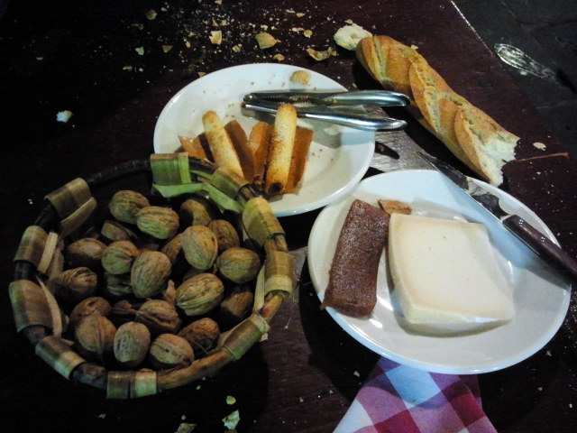 For dessert we got some Spanish cheese with walnuts and “membrillo”-jelly. Again French influence on this dish but this time the “membrillo”-jelly gave this dish a great Spanish kick. Addiotionally we got some typical Basque lemon-almond cookies called “tejas”.