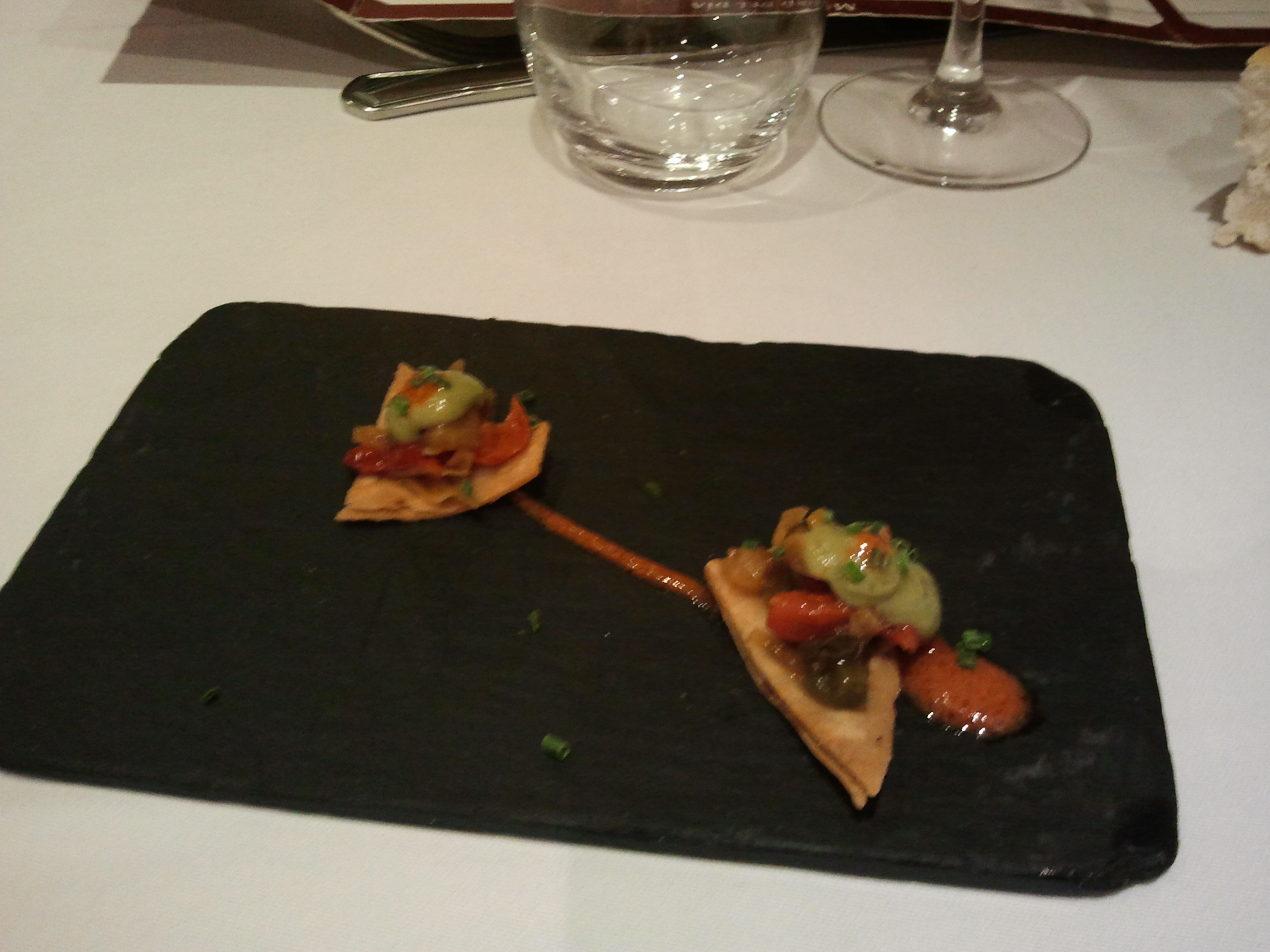 While waiting for the dishes we got for free some nacho-tapas with guacamole and tomato mix. It was quite delicious.