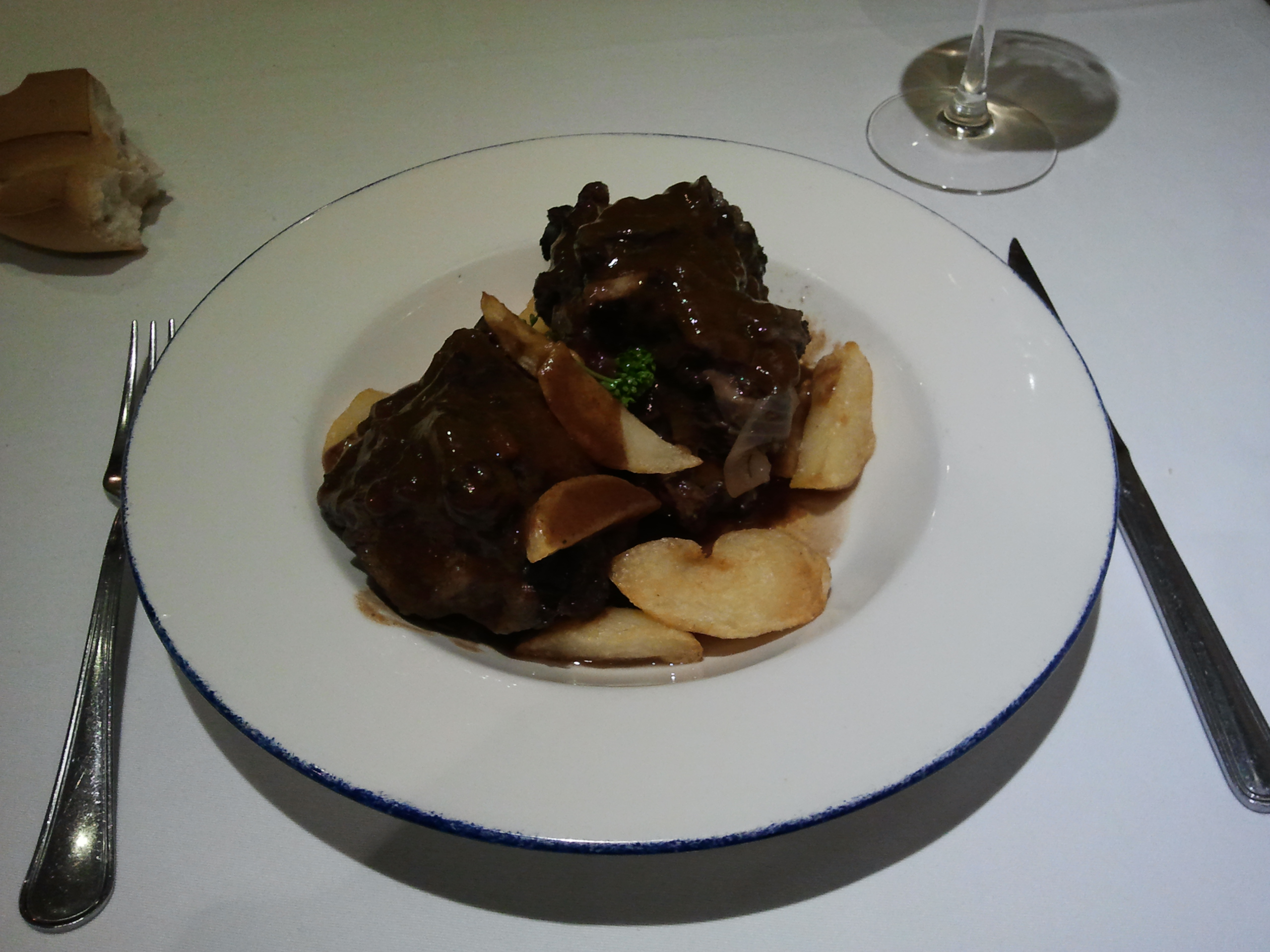 The main dish: Stewed bull’s tail: This is one of the most traditional dishes in the Castilian region. Unfortunately this one lacked of some cooking. The stewed bull’s tail usually has to be cooked slowly for a few hour. This long cooking procedures allows to melt down the gelatinous substance from the meat. Without the gelatine the meat becomes smooth and literally melts in your mouth.