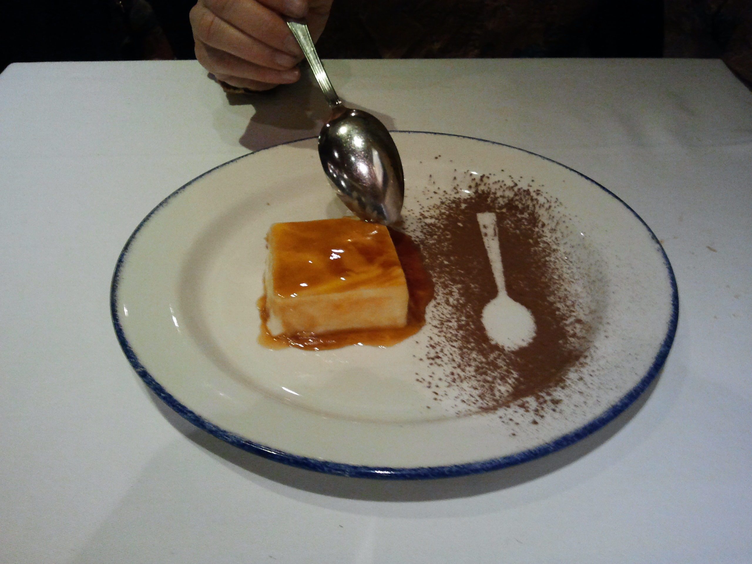Last on the table some Castilian-style cheesecake. This one is made with goat cheese from the region and home-made caramel. This was definitely a good compensation for the technical problems with the main dish.