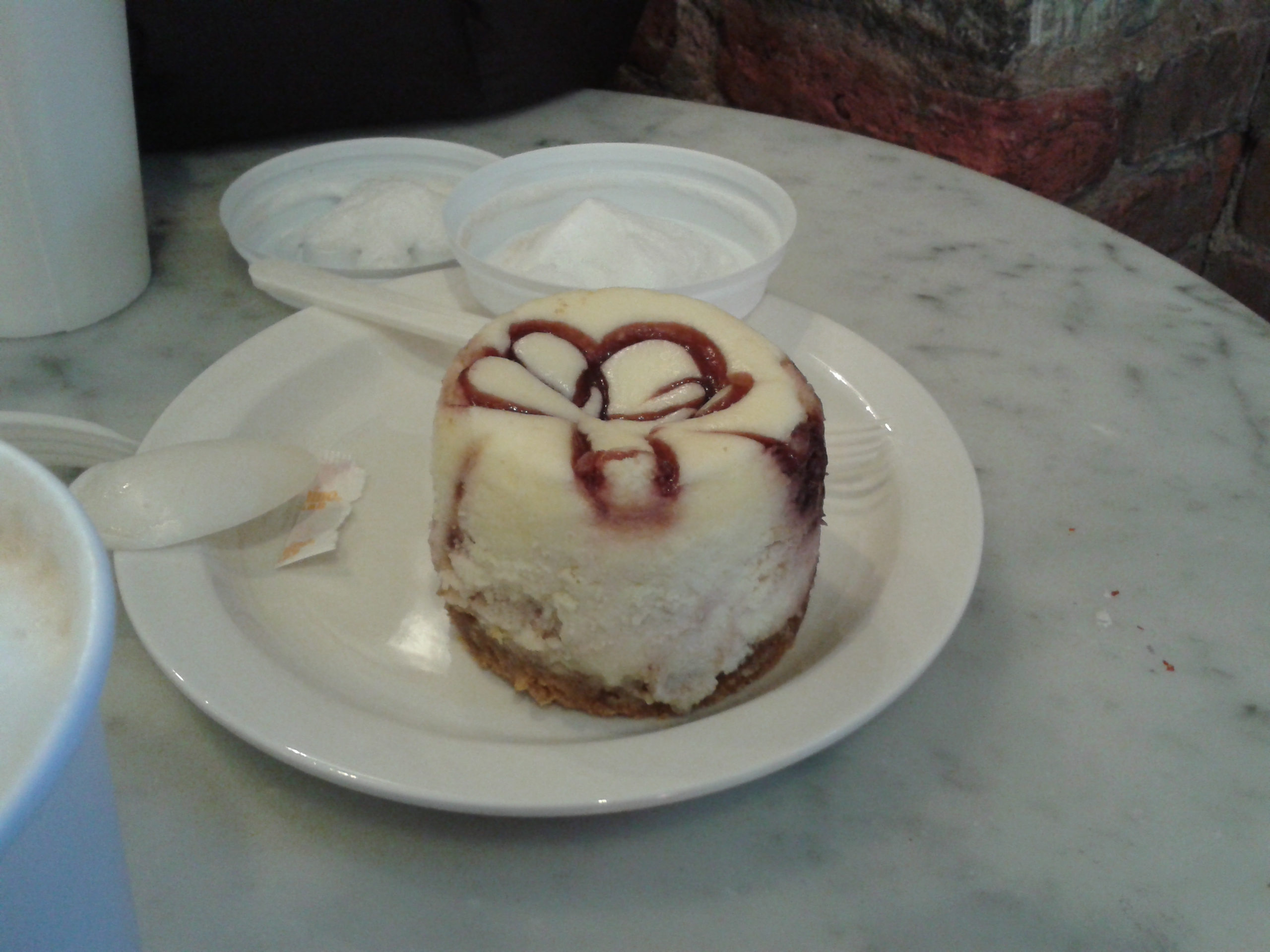 One thing you cannot miss out when you are in New York is definitely having some cheesecake. So walking around Soho in the early afternoon and wanting something sweet we found this cute place full of cupcakes, donuts, tars and also CHEESECAKE. The only ‘problem’ was there were so many to chose from. Original, Blueberry, Chocolate, Oreo… After this struggle we finally came to the decision to have some Raspberry White Chocolate Cheesecake.
