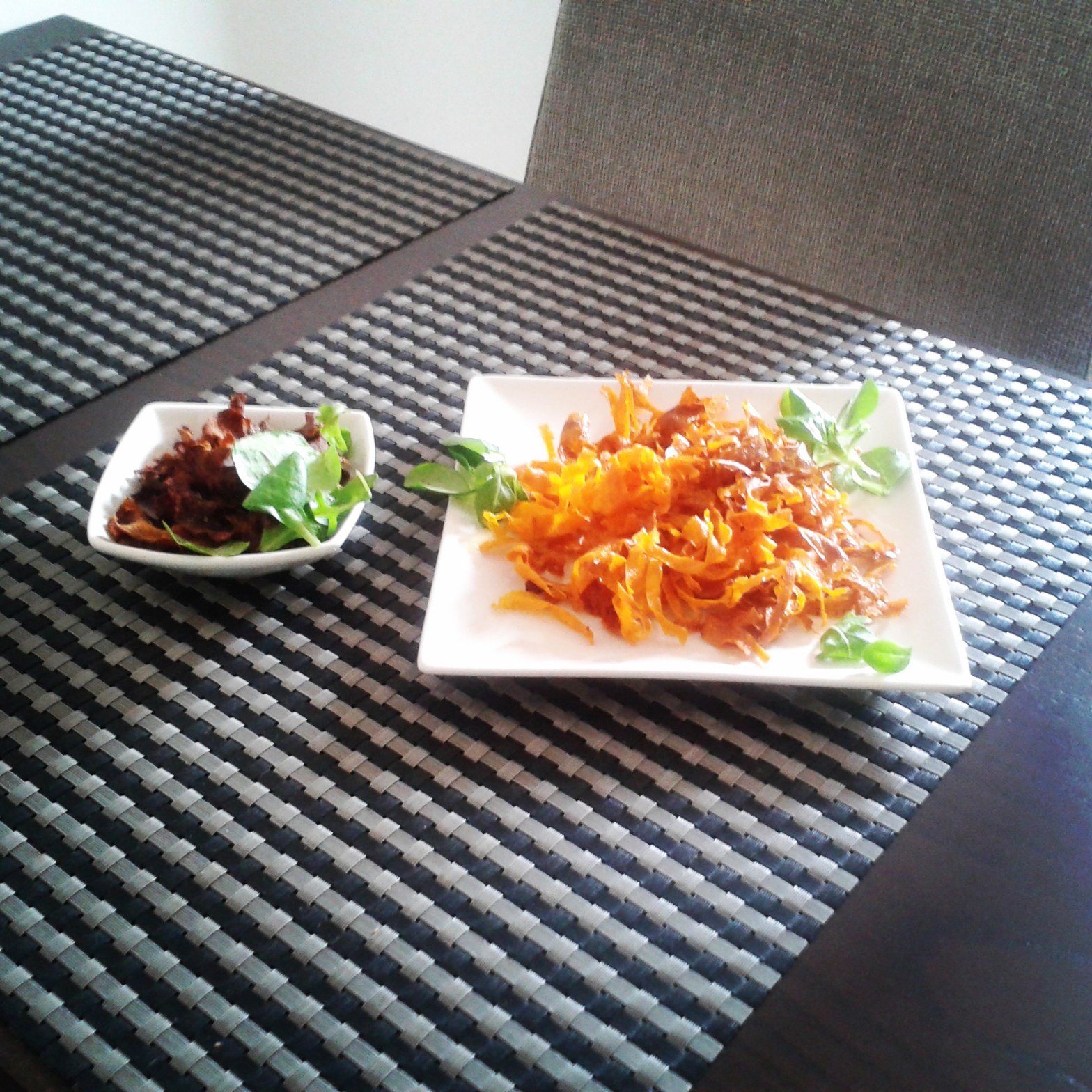 Making your own chips seems to be somehow trendy. The last awesome post I saw was from Randy on his blog http://splendidrecipesandmore.com/. So I wanted to carry on with that and went for some tasty carrot and pumpkin chips.