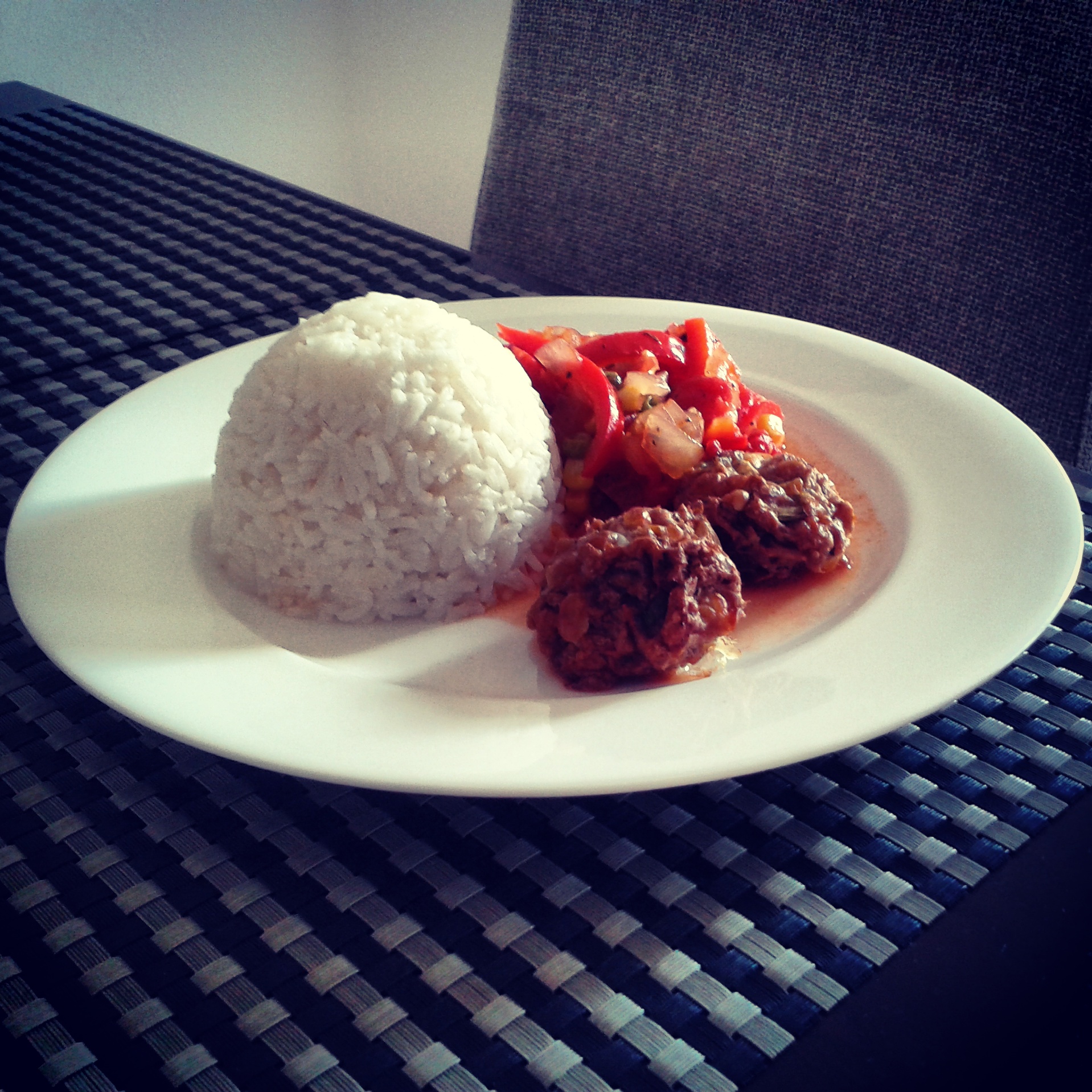 (In the picture the meatballs were served with some basmati rice and some red curry)