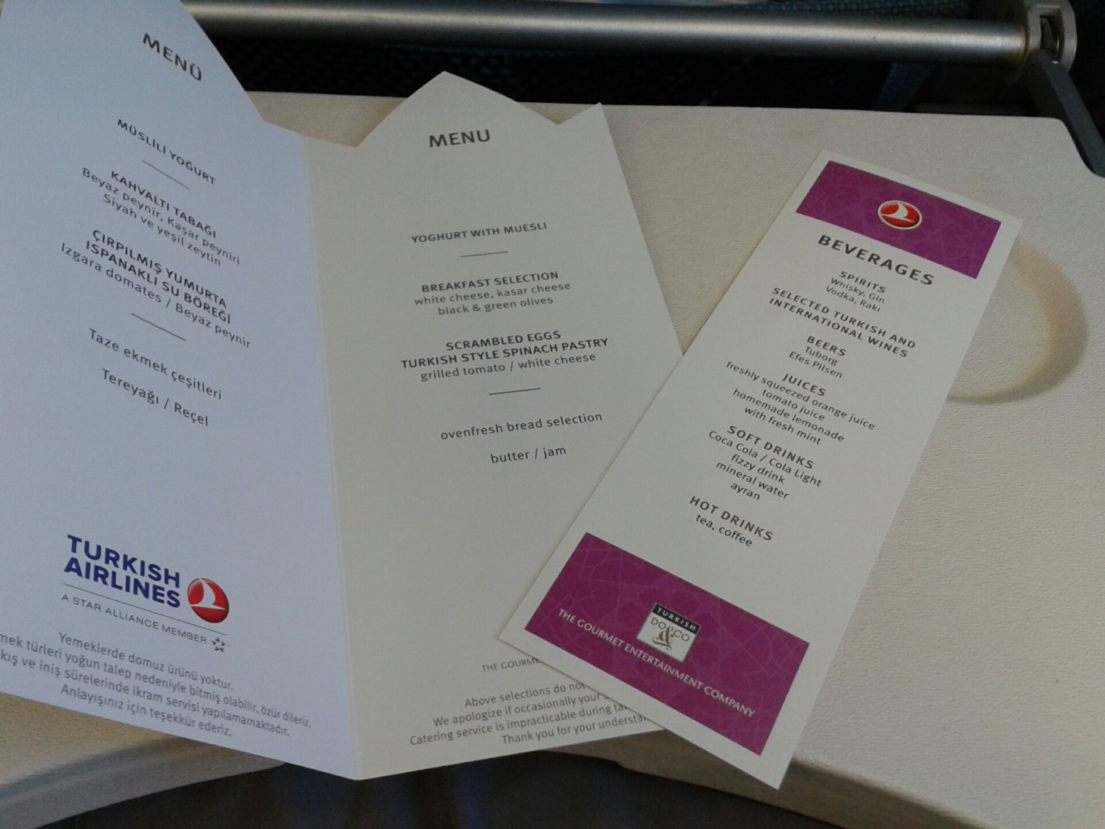 It has been very long since the last post on Airline food so it was time to do a new one. And what better than evaluating a complete menu for a very long transcontinental flight. Well actually two flights as we travelled from Osaka-Kansai Airport to Barcelona having a layover in Istanbul. So here we go:
