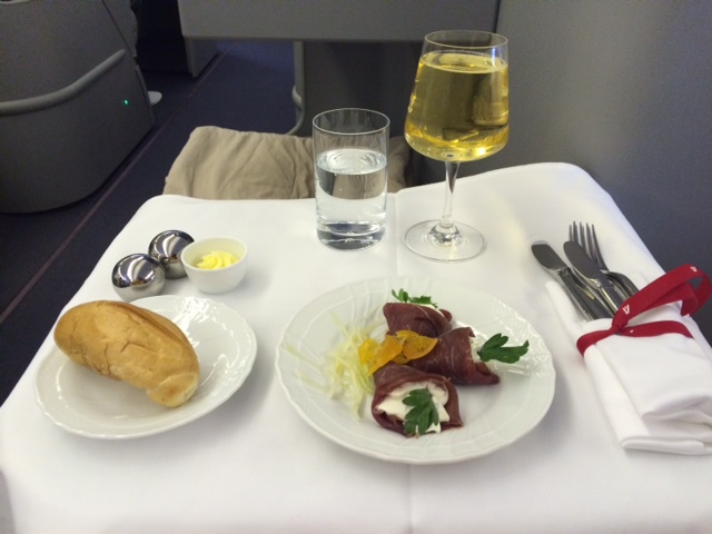 All in all very nice combined dinner (Well it is business class so the quality should be at a top level). The only thing to complain is the super dry bread. I do not know if it something general that happen on all flight services but until now I could not find any decent bread on any airline. Hope that search ends soon.