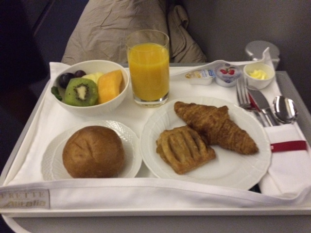 Just before landing some Italian styled breakfast, Juice, coffee fresh fruits, pastry and once again some super dry bread I stayed away from.