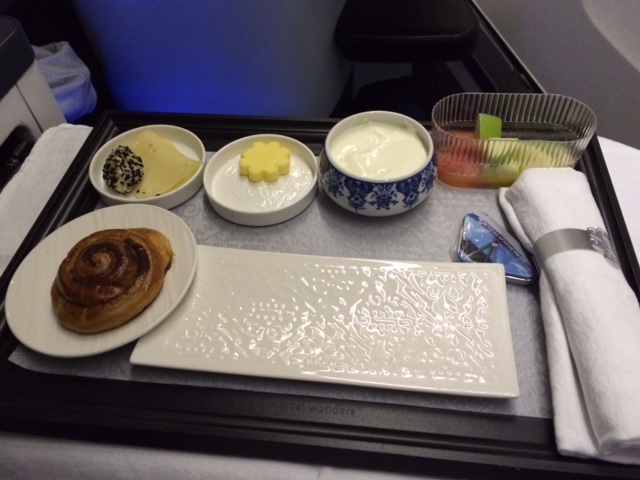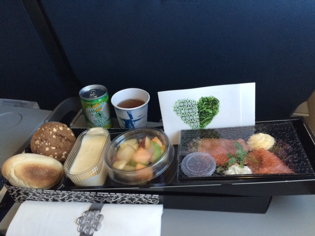 Just before landing typical European breakfast. CInnamon pinwheel, fruit, cheese, yoghurt and bread… As usual I stayed away from that. Once again no good bread up in the air.
