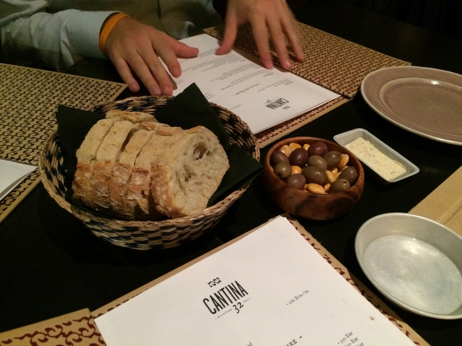 Just when you sit down the waiter will serve you a selection of Portuguese breads and olives. This traditional in all Portuguese restaurants and will happen no matter where you are.