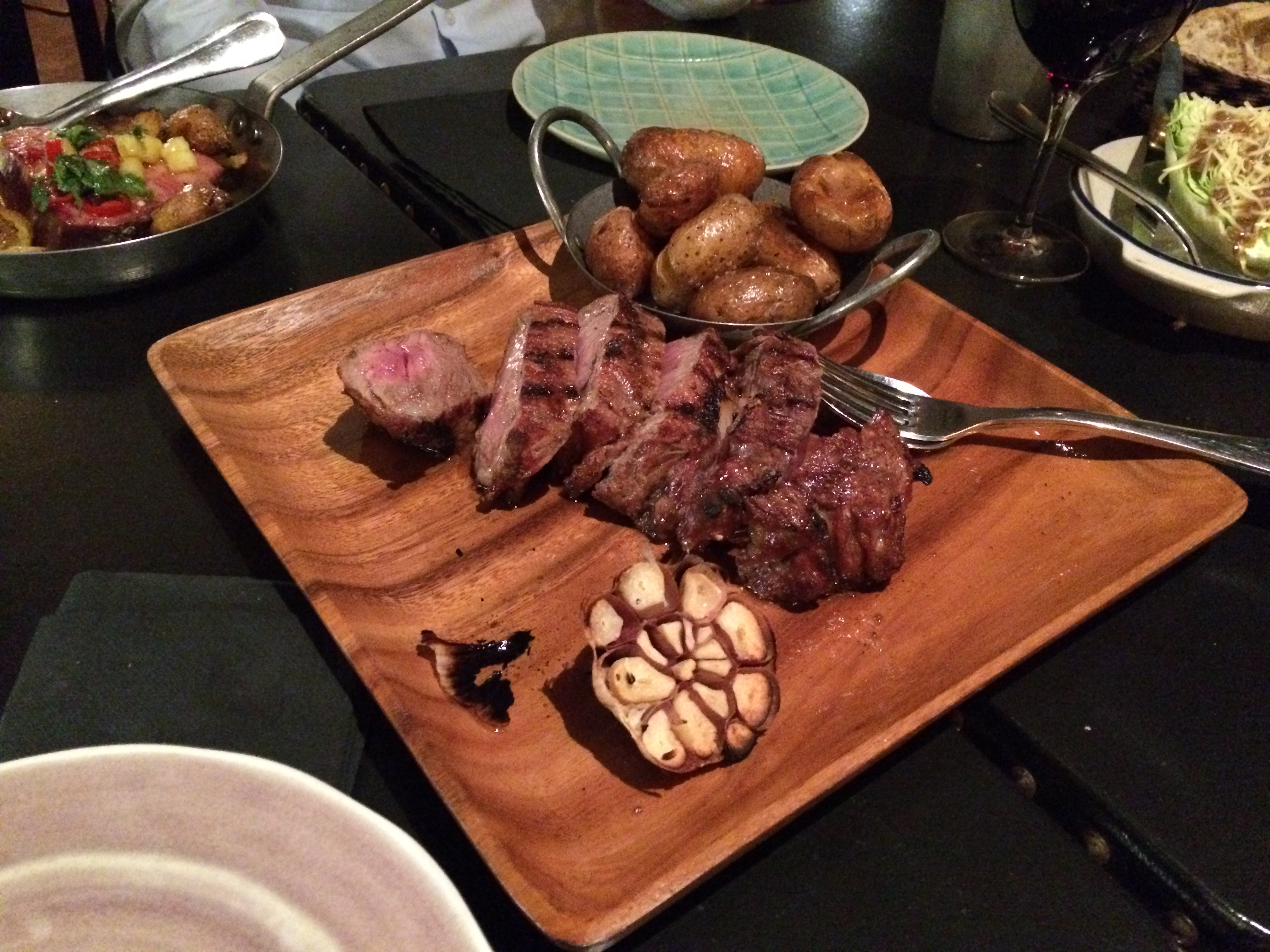 Second on the table tataki-styled tuna and grilled beef with roasted potatoes in olive oil and a cabbage DIY salad. A very rich selection of Portuguese served fish and beef. The tastes amazing und fully enjoyable