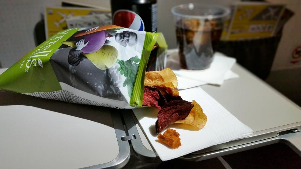 A coke and my favourite Tyrell’s veggie chips. Tyrell’s crisps are hard to find in Spain and somehow Vueling has them in their menu… so why not. All in all a very delicious flight.