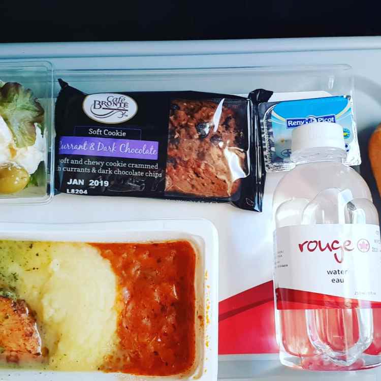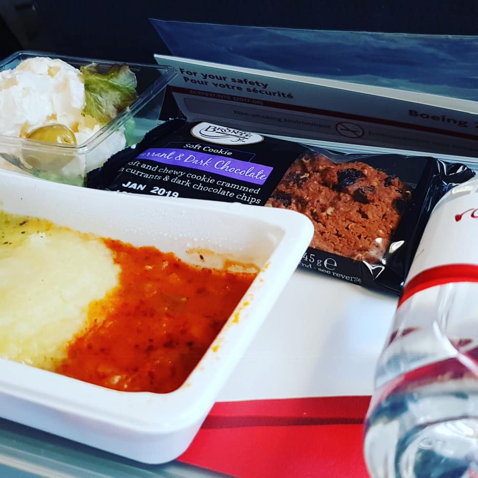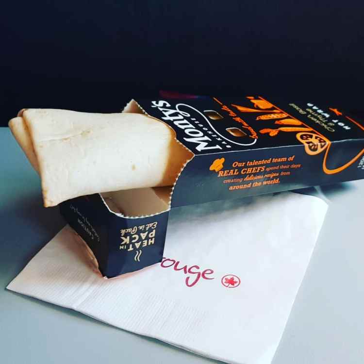Just before landing a small snack was served. A hot Monty’s chicken wrap that was ok.