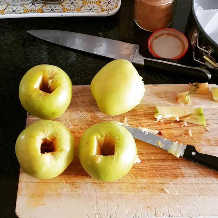 Remove the apple seeds by creating a ‘tunnel’ from the top to the lower part of the apple.