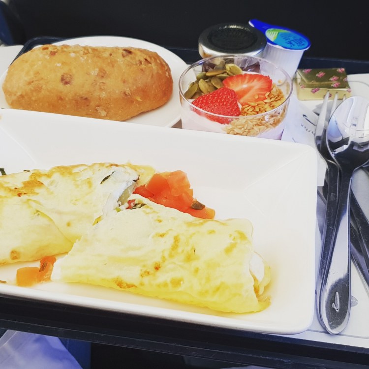 Well actually I expected little bit more. Only to be able to choose between full British breakfast and an ricotta omlette is not in sync with a healthy breakfast. The fruitiest thing on the whole meal tray a two pieces of strawberry on the yoghurt and a slice of lemon for those passengers ordering a gin & tonic at 8am in the morning.