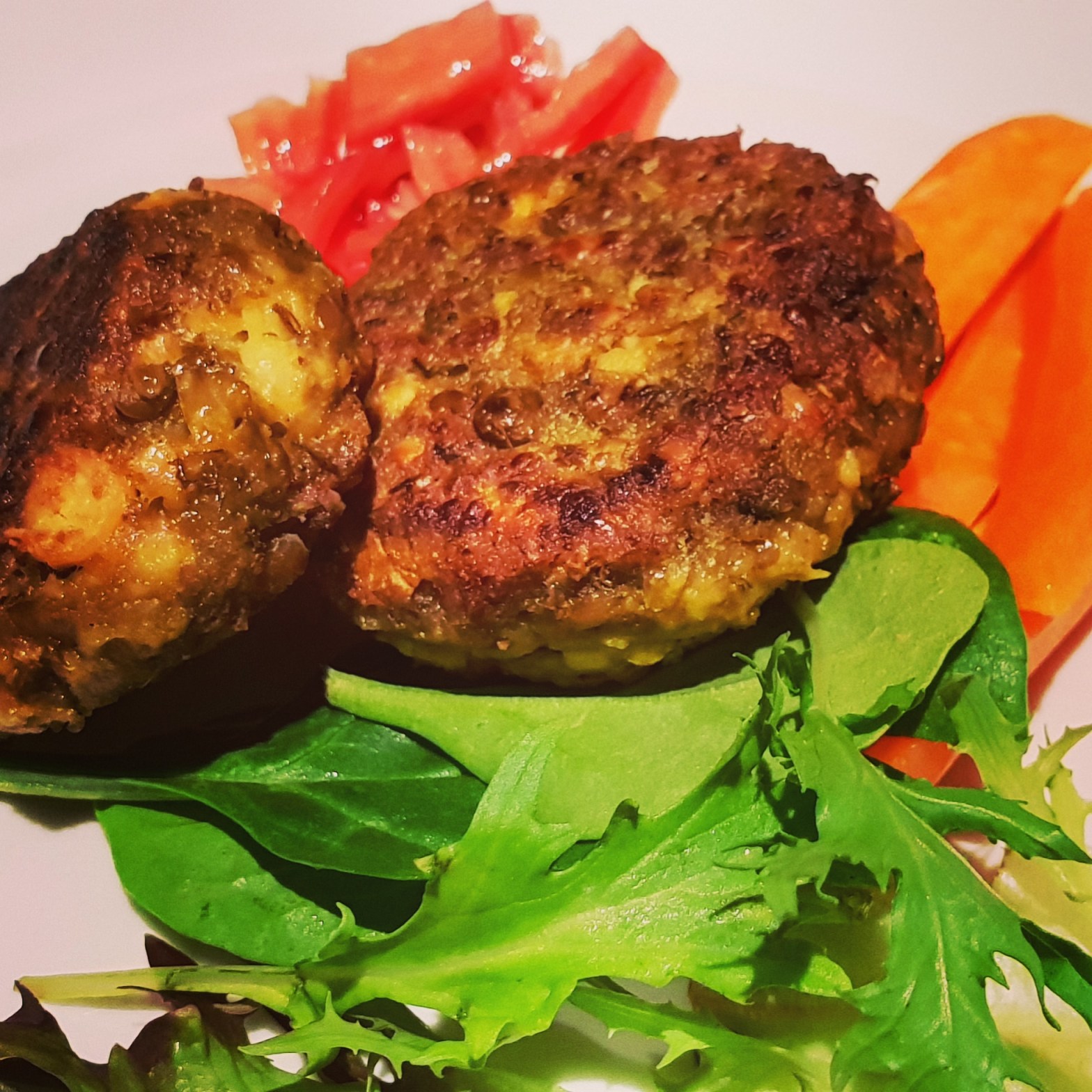 Mix with lentils, chickpeas, and flour Add spices and habdcrush all ingredients. (Alternatively you can blend the mix as well)