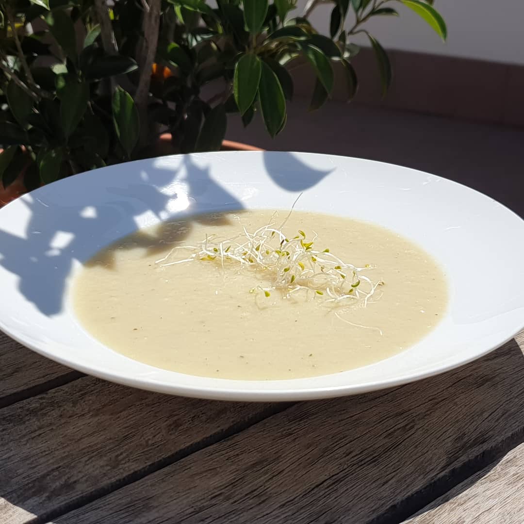 Once the soup is cooled down you can blend it. Filter afterwards and let set for at least 4 hours in the fridge. You can optionally add some milk or cream.